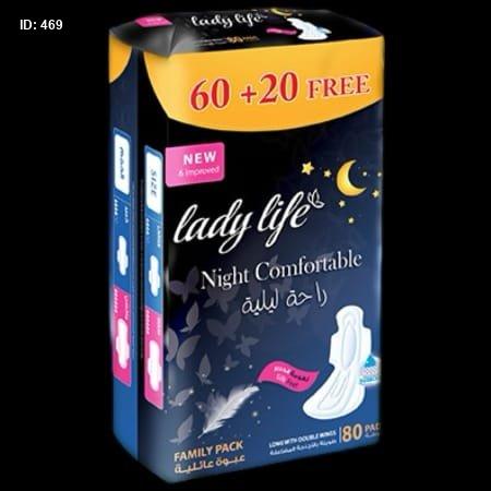ليدي لايف (Lady Life Night Comfortable): فوط نسائية ليلية "راحة ليلية" بالأجنحة المضاعفة، عبوة عائلية.
