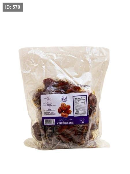 تمر خلاص منزوع النوى (Pitted Kholas Dates) - عبوة بوزن 1 كغم.